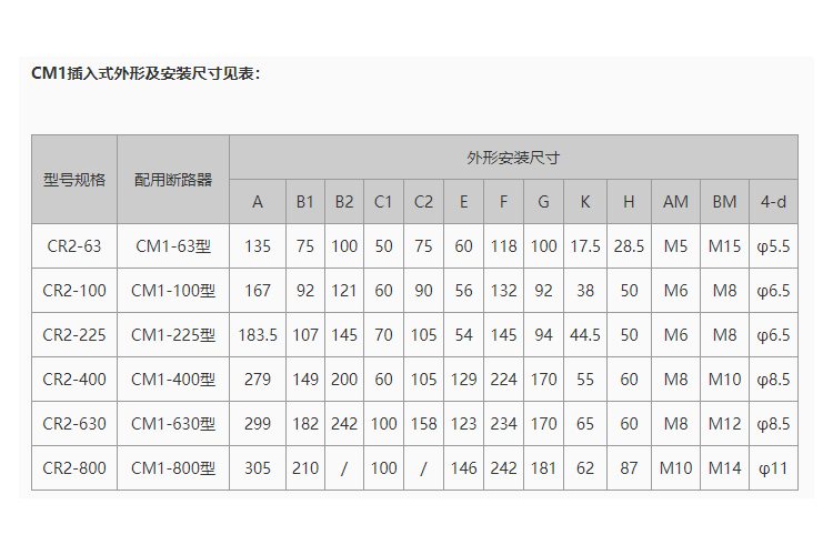 适用断路器系列